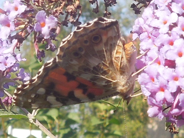Durch unsere Bienenvoelker haben wir seit einiger Zeit auch viel mehr Hummeln, Libellen, Wespen und Schmetterlinge. Wir sehen viele weisse Schmetterlinge, jetzt haben wir aber auch ein Pfauenauge entdeckt.